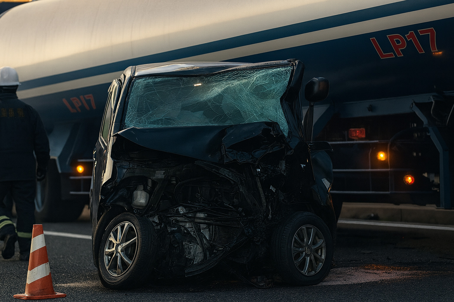 2025年12月4日(木)早朝、埼玉県上尾市の国道17号線において、タンクローリーと乗用車(軽自動車)が衝突する交通事故が発生しました。