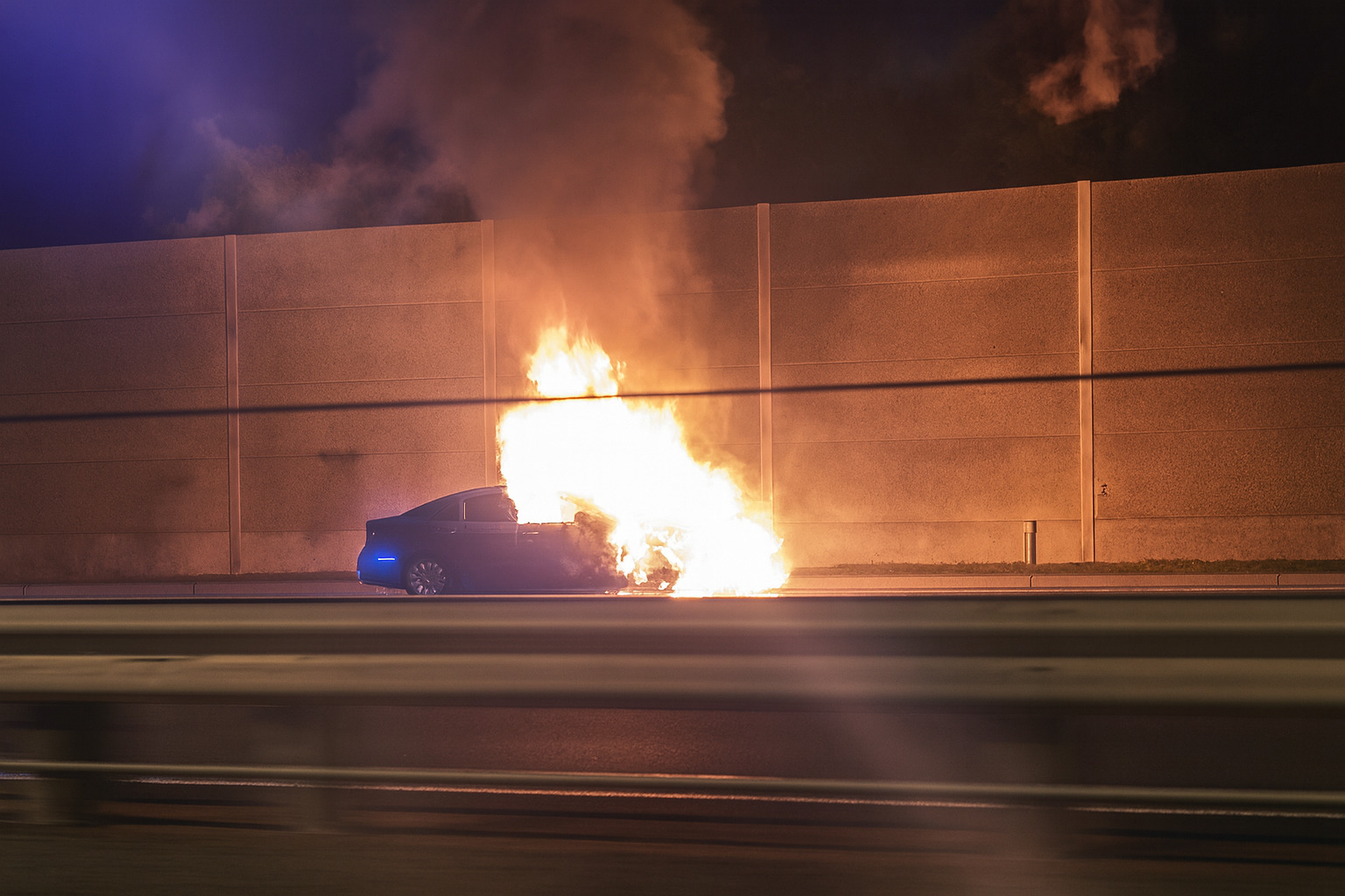 - 状況:路肩での車両火災、黒煙と激しい炎