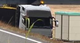 - 状況:高さ制限(3.6m)のあるゲートに大型トラックが衝突し、立ち往生している状態。