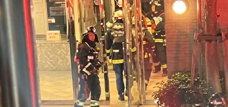 - 消防隊員が建物内部へ進入し、状況確認および消火活動にあたっている模様。