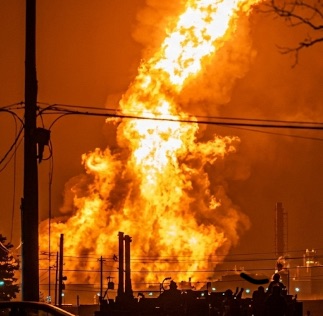 今回目撃された巨大な炎の正体は、石油コンビナートなどの施設で見られる「フレアスタック」と呼ばれる現象です。