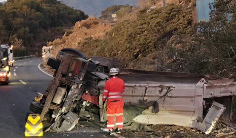 画像からは、トラックが車線を塞ぐ形で横倒しになっており、復旧には相当な時間を要する可能性が高い状況が見て取れます。
