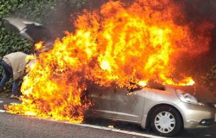 • 車両は激しく炎上し、爆発音の報告もあり。