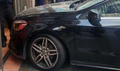 現場の目撃情報および提供された画像によると、店舗に突っ込んだ車両は黒色のメルセデス・ベンツ(Aクラス等のハッチバックタイプと推測)とみられます。