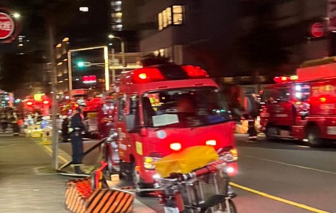 現場はなにわ筋沿いの繁華街付近で、一時騒然としています。