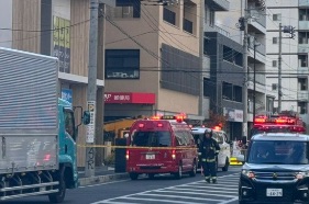 現場付近に居合わせた方の情報によると、11時48分時点で既に消防車が到着し、規制線(KEEP OUTテープ)が張られていました。