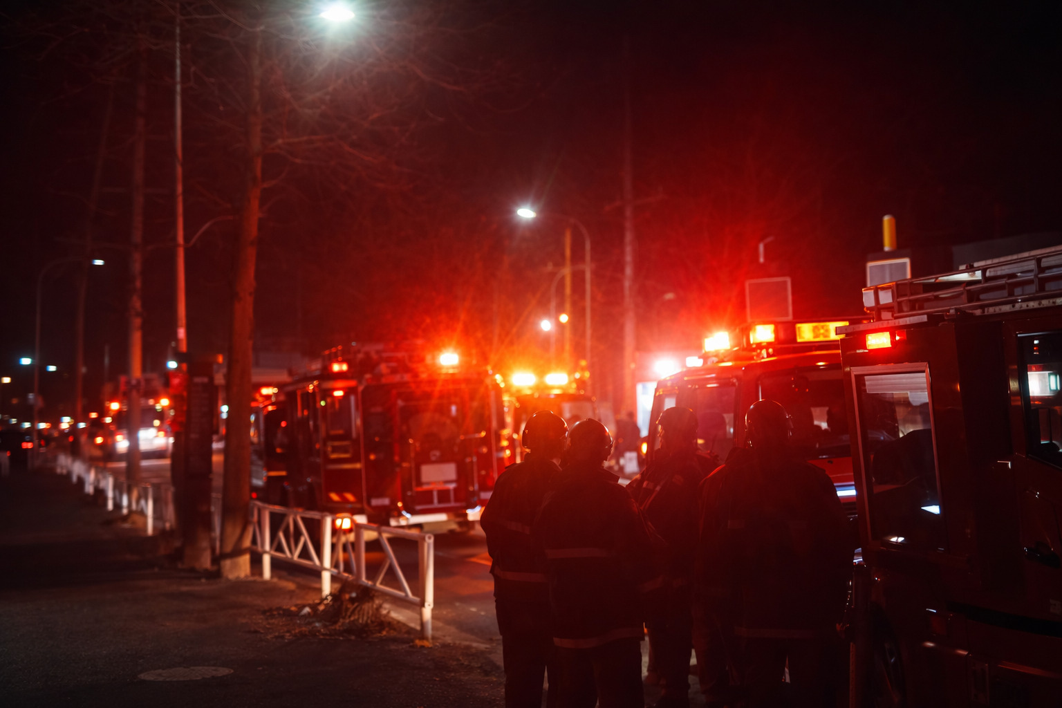 - 消防車が多数出動し、サイレンが鳴り響いている。
