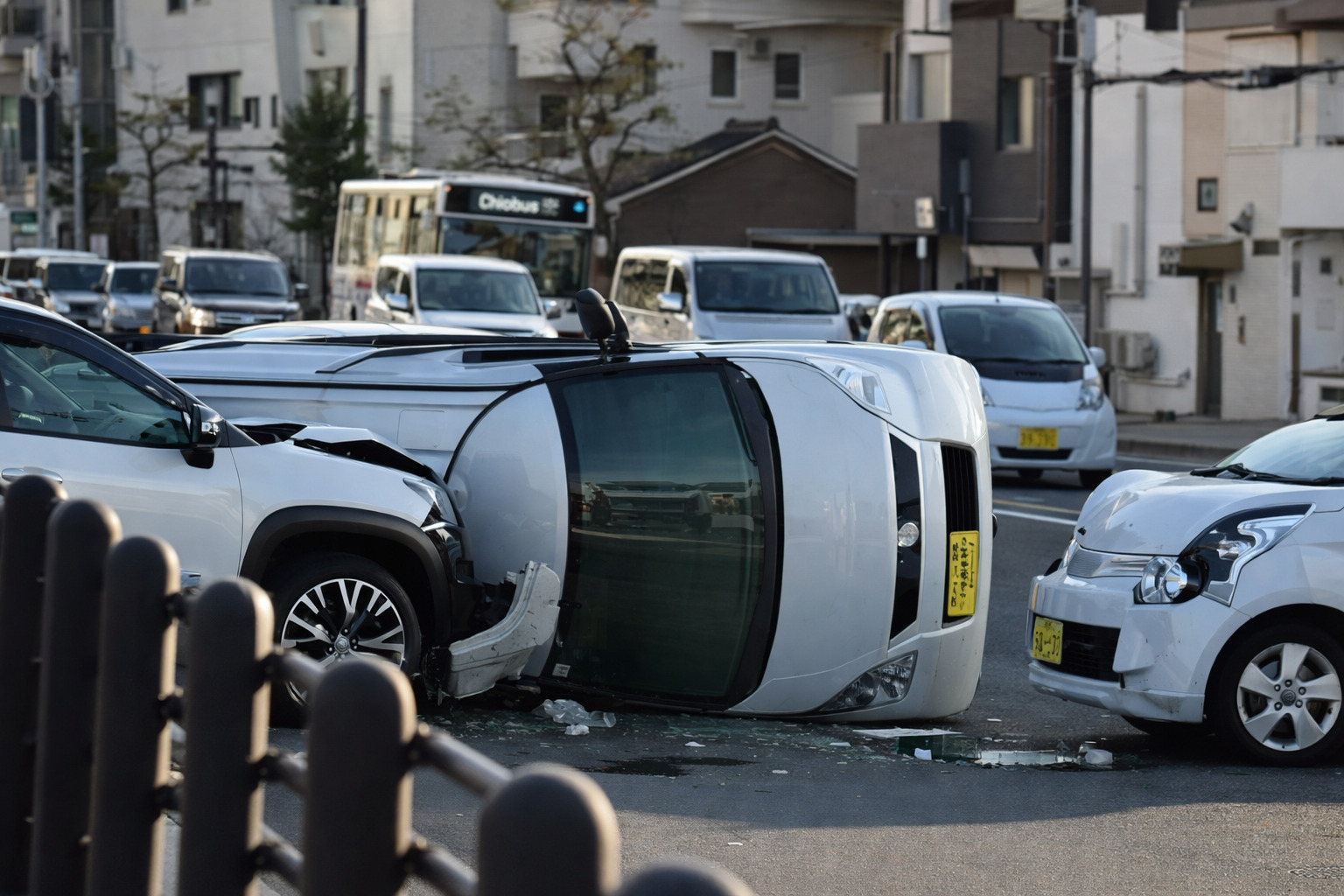 「車3台の大事故で、1台が横転してる…完全に動かない」