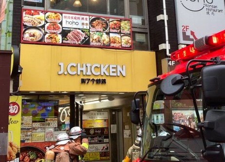 現地からの画像情報によると、消防隊員が活動しているのは「J.CHICKEN(叫了个炸鸡)」や韓国料理店「hoho」の看板が入っているビルのようです。