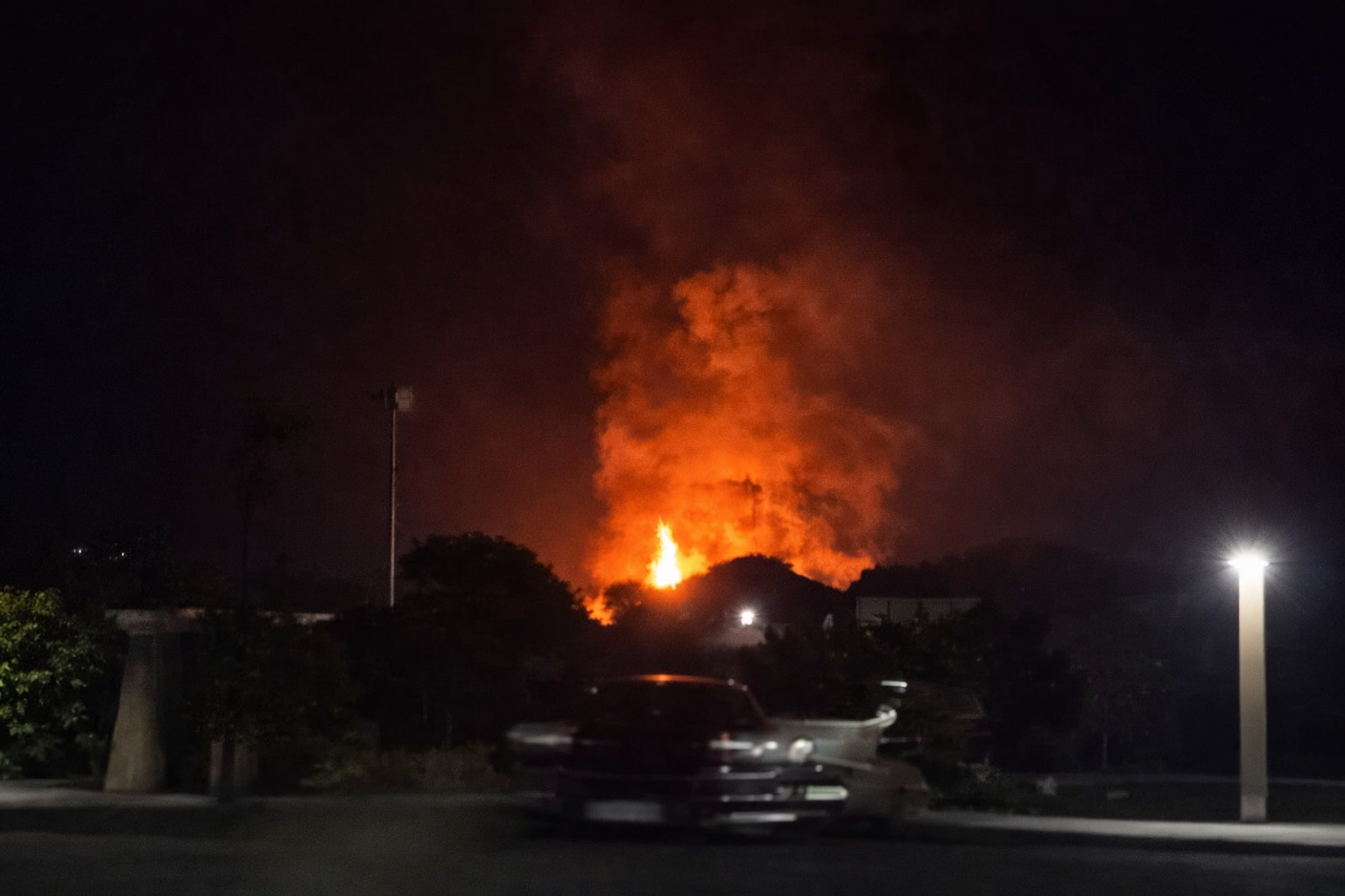 「建物火災で空が赤くなっている」