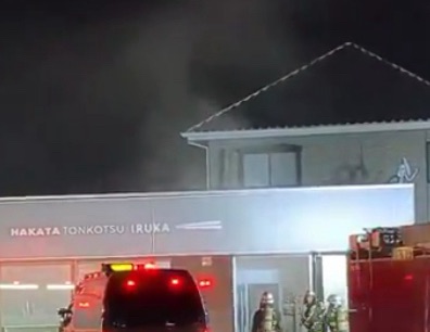 SNSやニュース速報アプリの情報によると、現場は人気ラーメン店「博多豚骨 海豚(HAKATA TONKOTSU IRUKA)」の店舗建物である可能性が高いと報告されています。
