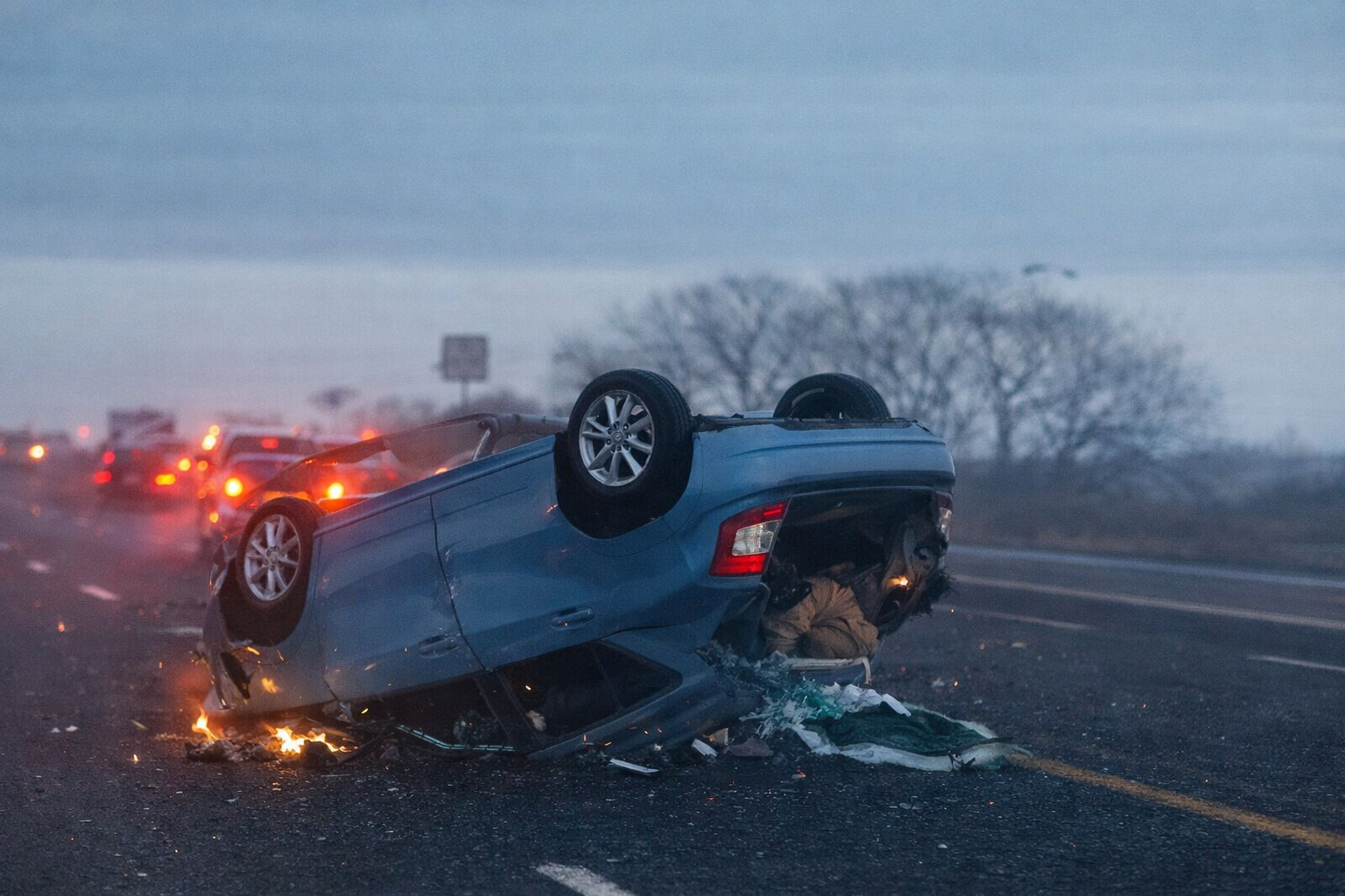 「ありえない場所で渋滞発生してる💦なんて思いながら運転してたら車ひっくり返ってたわ😱怖」