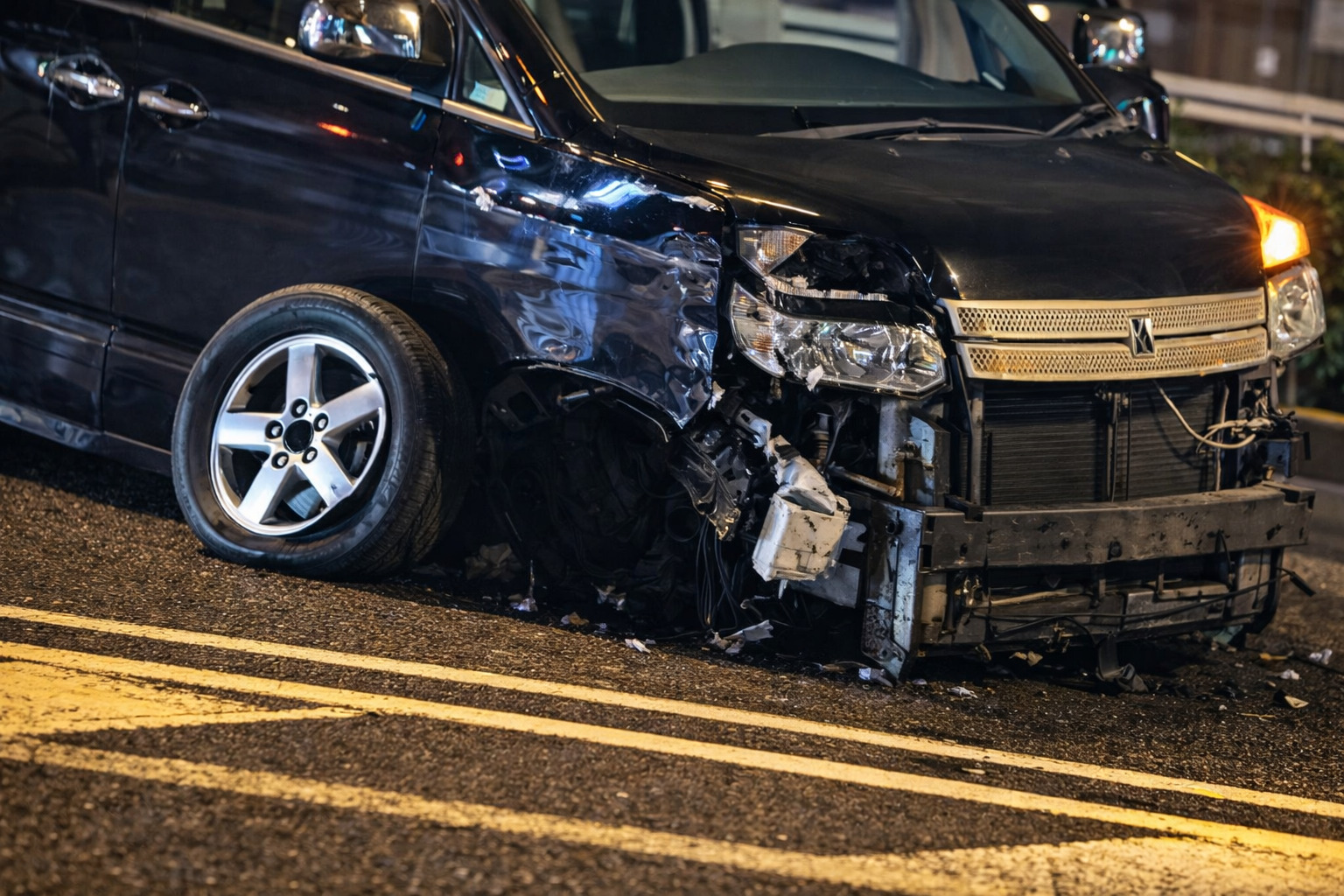 | 被害状況 | 黒色の乗用車が大破・自走不能 |