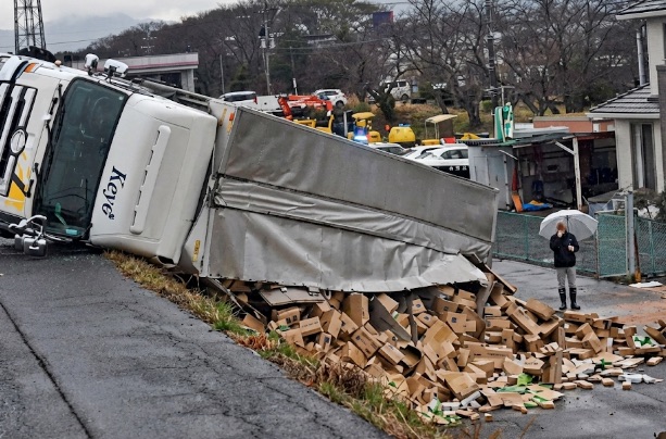 - 事故形態:大型トラックの単独事故(横転・脱輪)