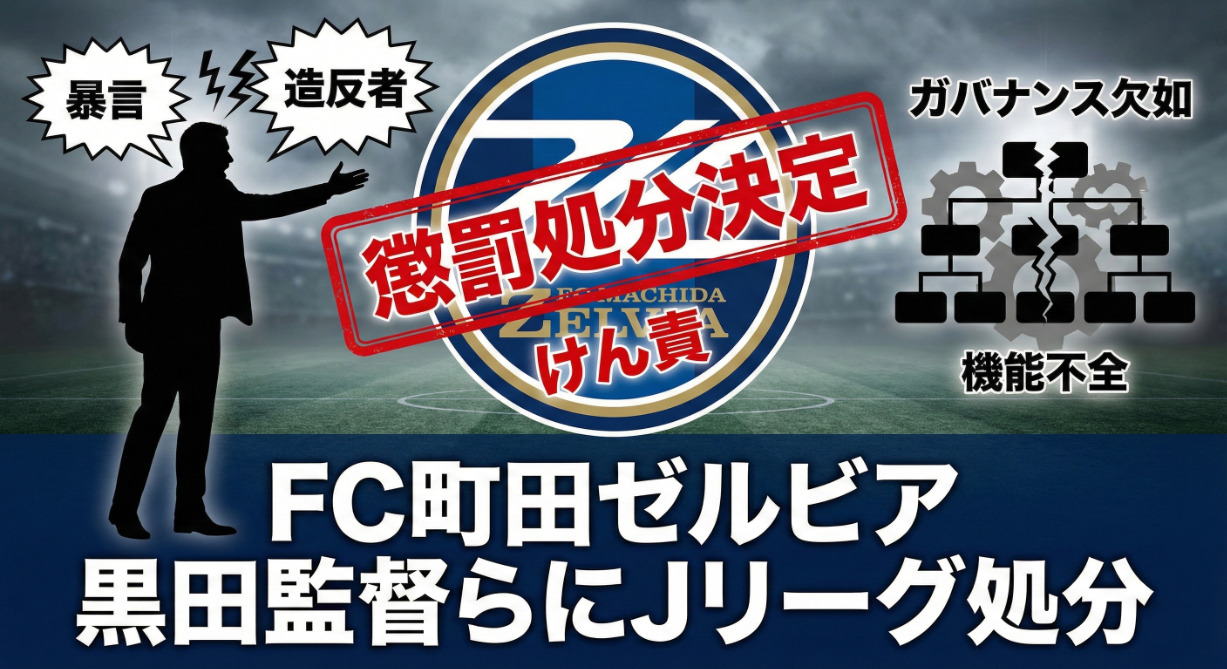 Jリーグ(公益社団法人日本プロサッカーリーグ)は、FC町田ゼルビアの黒田剛監督およびクラブに対し、懲罰処分を決定したことを発表しました。昨シーズンからの快進撃で注目を集める同クラブですが、ピッチ外での指導体制とガバナンスの問題が浮き彫りとなりました。