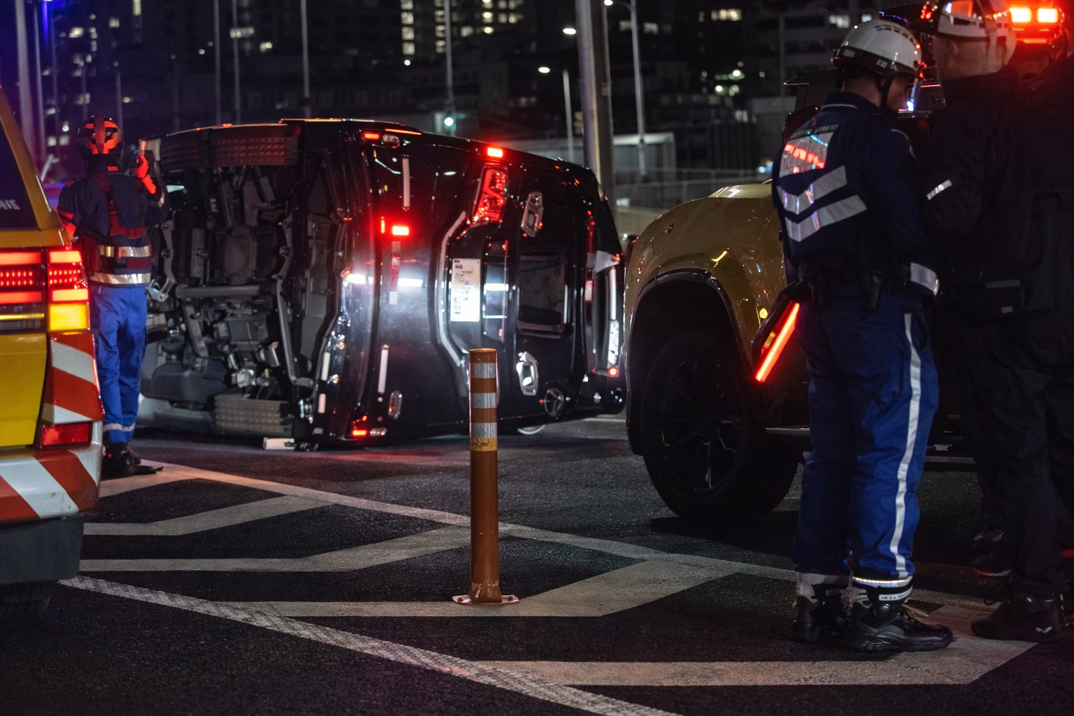 「阪神高速 西行き、摩耶から深江辺りで事故発生。ワンボックス横転して道塞いでます。逆方面で目撃しました。」