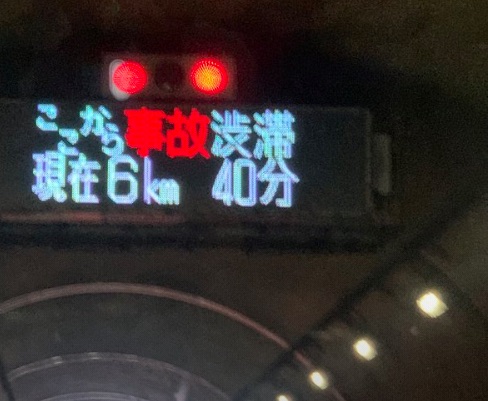 「ここから事故渋滞 現在6km 40分」