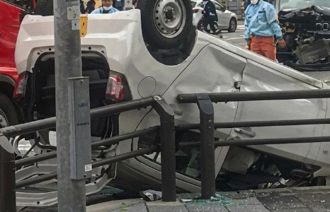 2025年12月26日、午前8時過ぎから名古屋市中区門前町1丁目の「西大須交差点」付近において、車両が完全に上下反対にひっくり返る(ヘソ天状態)深刻な横転事故が発生しました。