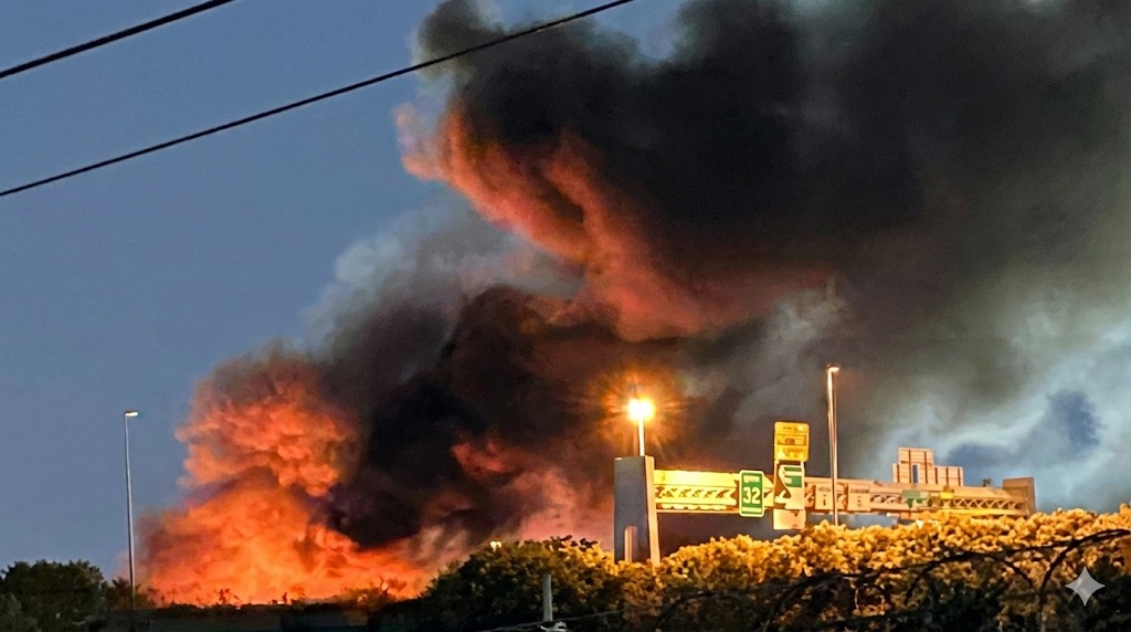現場からは巨大な火柱と激しい黒煙が上がっており、付近を走行する車両や周辺住民から多くの報告が寄せられています。この記事では、現在の被害状況や交通規制、SNSでの目撃情報などを詳しくお伝えします。