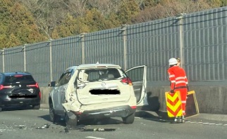 SNS上の目撃情報や現場の画像によると、白旗トンネル付近の追い越し車線側で、白いSUVを含む複数台が絡む玉突き事故が発生している模様です。車両の後部が大きく破損している様子が確認されており、事故の衝撃の大きさがうかがえます。