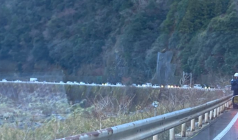 その後、一部区間で警察による誘導のもと片側交互通行が行われている模様ですが、通過にはかなりの時間を要する状態です。