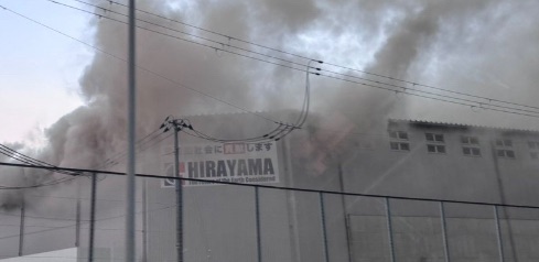 火災が発生したのは、名神高速道路の南側に位置するエリアです。現場の建物には「HIRAYAMA」という大きな看板が見えますが、火災情報等の速報では「株式会社サンデーキット」として報告されています。