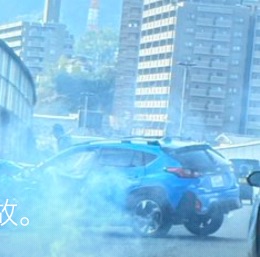 • 状況:複数台が絡む事故の模様。青色の車両から煙が上がっており、車両火災の可能性があります。