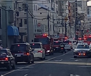 年末の準備等で人通りも多い時間帯です。近隣の方は煙を吸い込まないよう窓を閉め、現場には近づかないようにしてください。