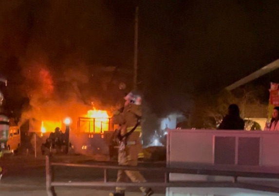 投稿された画像からは、建物が激しく燃え上がり、夜空に煙が立ち上っている様子が確認できます。駅前通り周辺でも消防車両のサイレン音が響き渡り、騒然としている模様です。