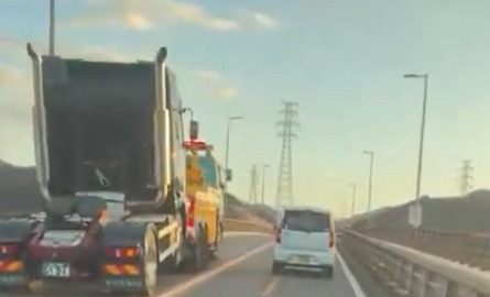 2026年1月6日夕方、岡山県岡山市南区飽浦付近、児島湾大橋(こじまわんおおはし)において、大型トレーラーのヘッド部分(牽引車)と台車(被牽引車)が外れるという珍しい事故が発生しました。