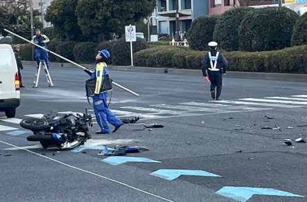 2026年1月8日(木)朝、東京都大田区大森本町1丁目付近、国道15号(第一京浜)および国道131号(産業道路)の合流地点付近において、バイクとワゴン車が関係する交通事故が発生しました。