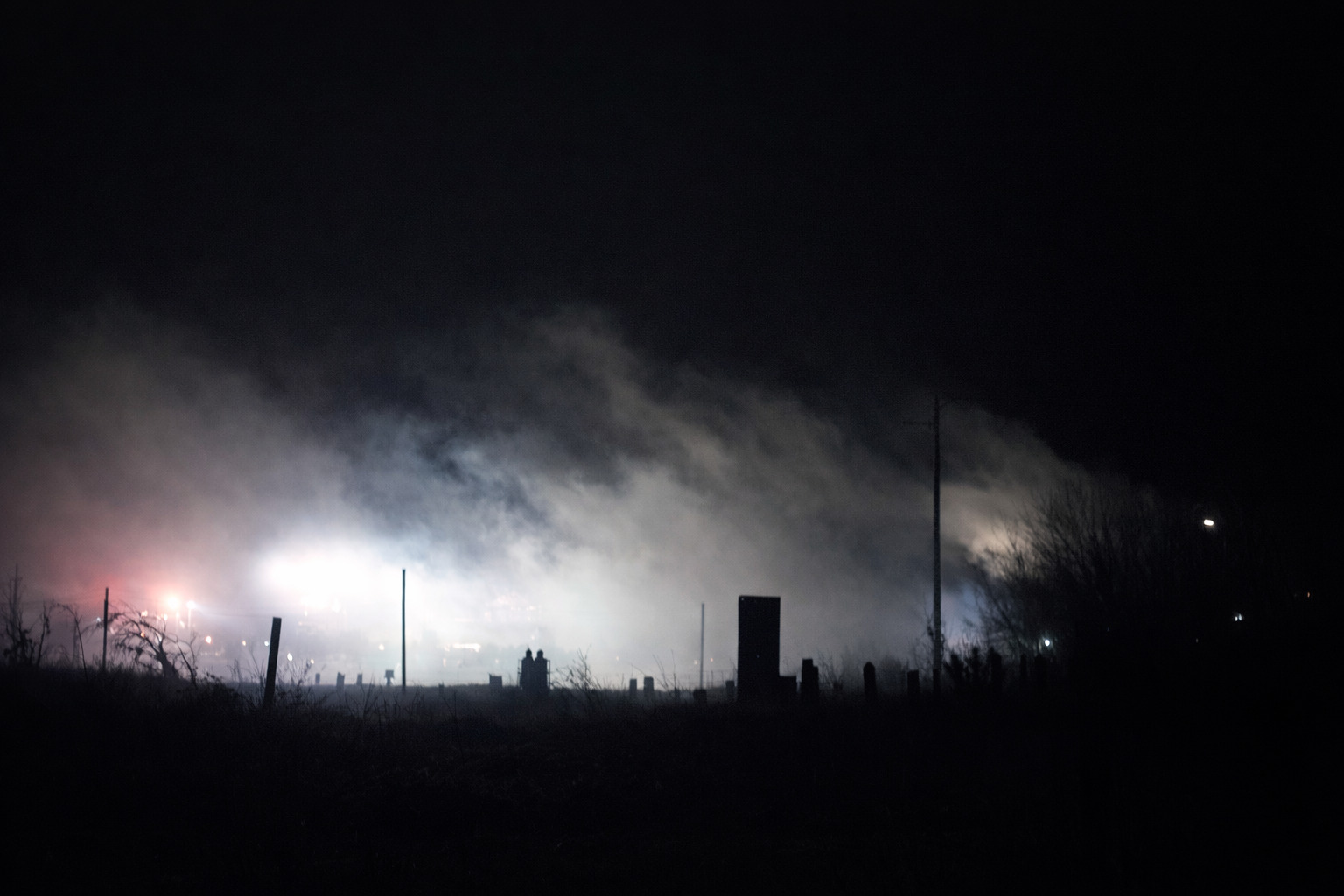 火災現場周辺は大変危険です。野次馬行為等は消防活動の妨げになるため厳に慎んでください。近隣にお住まいの方は、窓を閉めるなど煙を吸い込まないよう対策を行ってください。