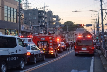 - 消防車・救急車・特別救助隊(レスキュー)など緊急車両が多数出動中