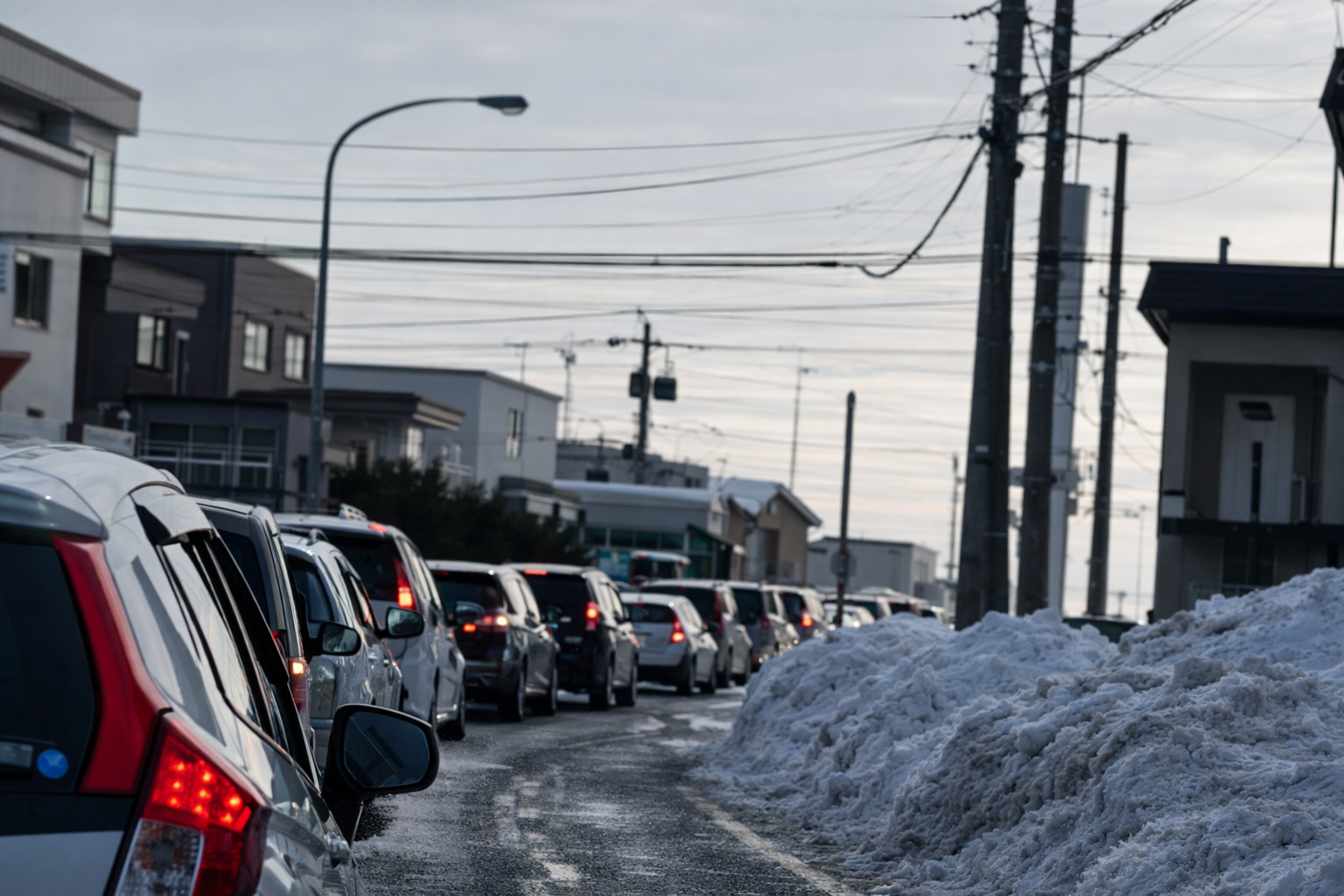 現在は国道5号線などの幹線道路だけでなく、「1本ずれた道(裏道)」も危険な状態です。裏道は除雪が行き届いていない場合があり、スタックのリスクがさらに高まります。