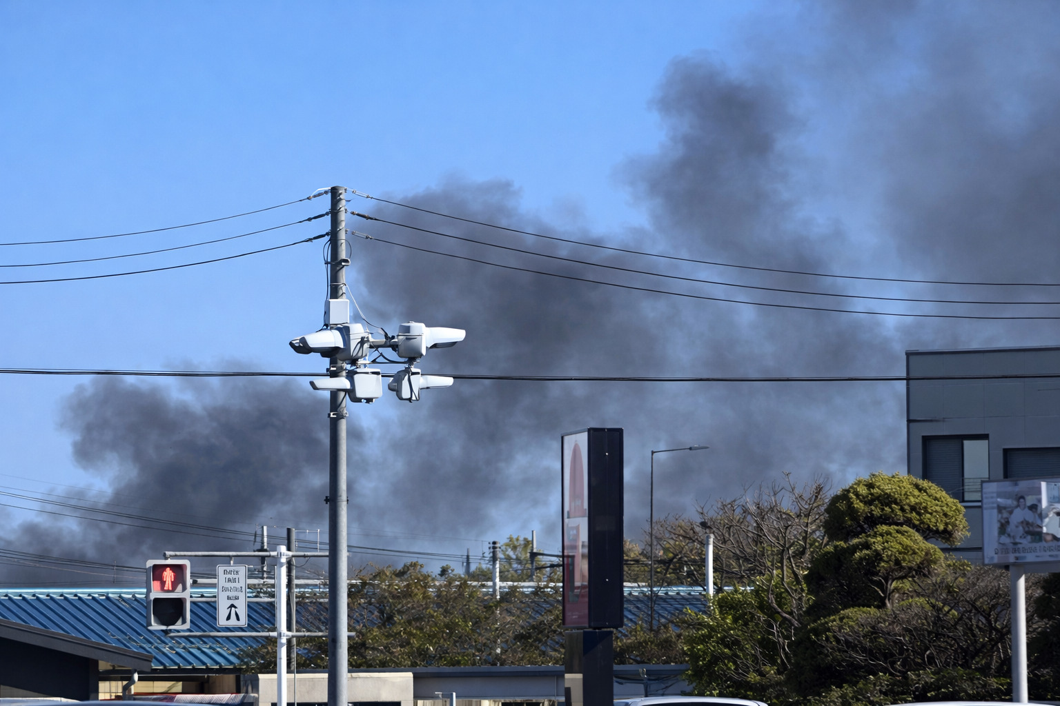 - 状況:建物火災。黒煙が上がっており、遠方からも確認できる状態。