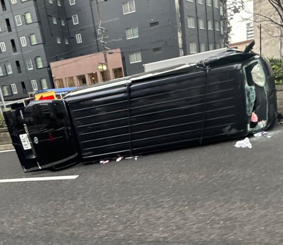 2026年1月16日朝、愛知県名古屋市中区の交差点付近において、乗用車が横転する交通事故が発生しました。