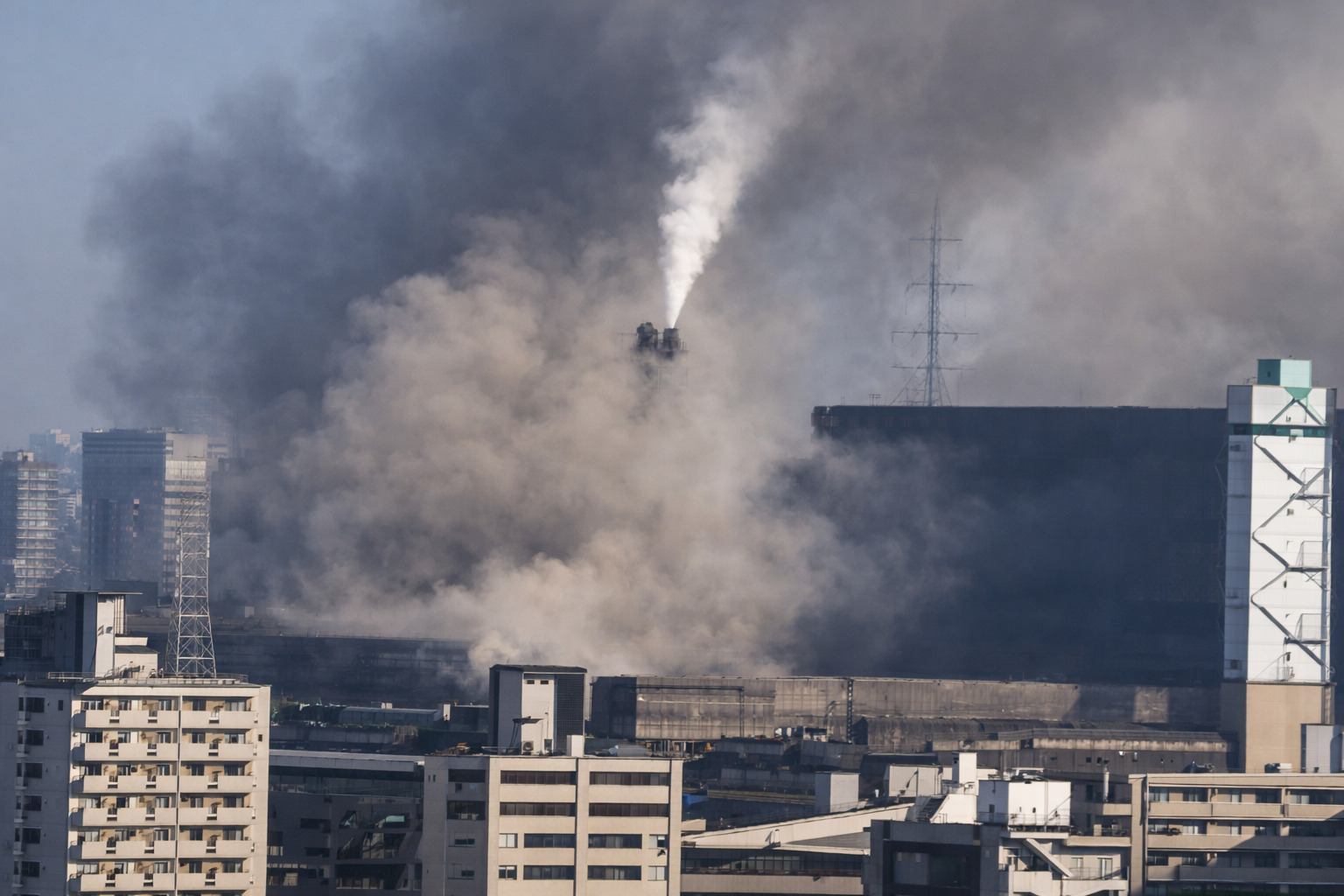 • 工場エリアからの黒煙の上昇