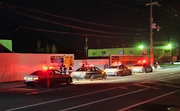 - 状況:道路沿いに少なくとも4〜5台以上のパトカーが赤色灯を点灯させて停車中。警察官が複数名集まり、現場の確認作業を行っている様子が確認されています。