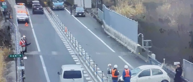 公開されている道路カメラの映像では、白い乗用車が単独で衝突している様子や、パトカー、道路維持作業車が到着し、規制を行っている様子が確認されています。警察による実況見分やレッカー作業が行われるため、規制解除までには時間がかかる可能性があります。