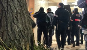 画像等の情報からは、建物入口付近に警察官が集まっている様子がうかがえますが、具体的な事件の内容(喧嘩、事故、その他トラブル等)については公式発表待ちの状態です。