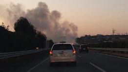 • 状況:中央分離帯の草などが燃焼。白い煙が上がり、視界不良。