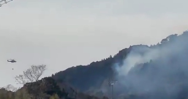 現場では山の中腹から煙が上がっており、消防ヘリによる消火活動が行われているとの情報が入っています。