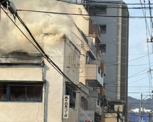 現場画像からは、建物の窓から灰色の煙が激しく噴き出している様子が確認されており、周辺は一時騒然となりました。