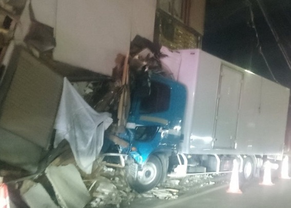 報道等の情報によると、この事故は交差点での乗用車との衝突がきっかけで、その弾みでトラックが道路脇の建物に突っ込んだとみられています。