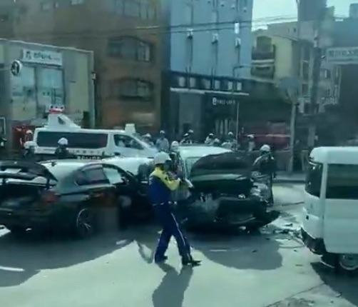 SNSや現地からの報告によると、交差点内で車両の前方が大破するほどの激しい衝突が確認されています。救急・警察車両が多数出動し、騒然とした状況が続いています。
