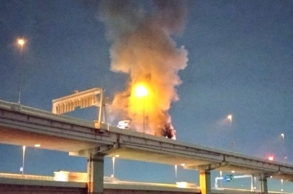 【火事】東京都葛飾区堀切、首都高C2中央環状線・小菅JCT〜堀切JCT間で大型トレーラー火災による通行止め発生(2月5日)