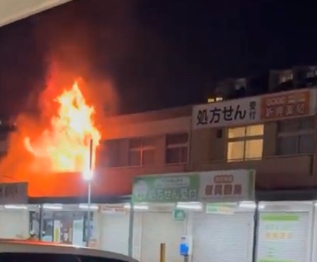 現場は「沖縄料理すまゆくい」などの店舗が入る建物で、隣接する調剤薬局などの看板も見受けられます。周辺道路では消防隊による消火活動が行われるため、通行規制や渋滞が発生する可能性があります。近隣の方は煙を吸い込まないよう窓を閉めるなど、十分にご注意ください。