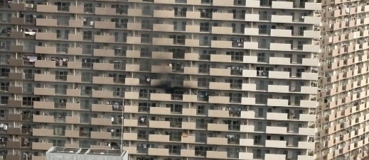 現地の状況:マンション中層階から黒煙