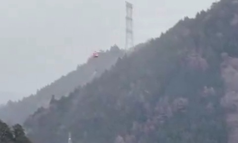 • 「自衛隊ヘリ」や「防災ヘリ」が出動し、空中からの消火活動が行われています。