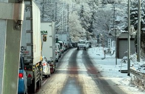 現在、周辺道路は雪の影響もあり非常に滑りやすくなっています。渋滞末尾での追突事故にも十分注意し、無理な通行は控えて迂回ルートの検討をおすすめします。